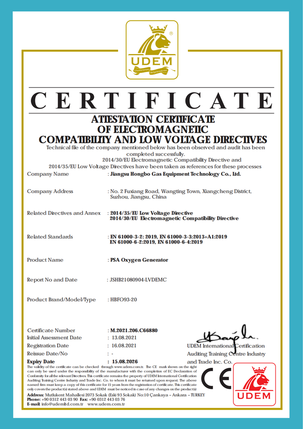 制氧機(jī)CE證書